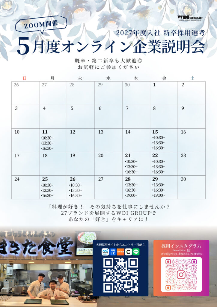 2027年度入社 新卒採用向けオンライン企業説明会(5月開催)を実施します。